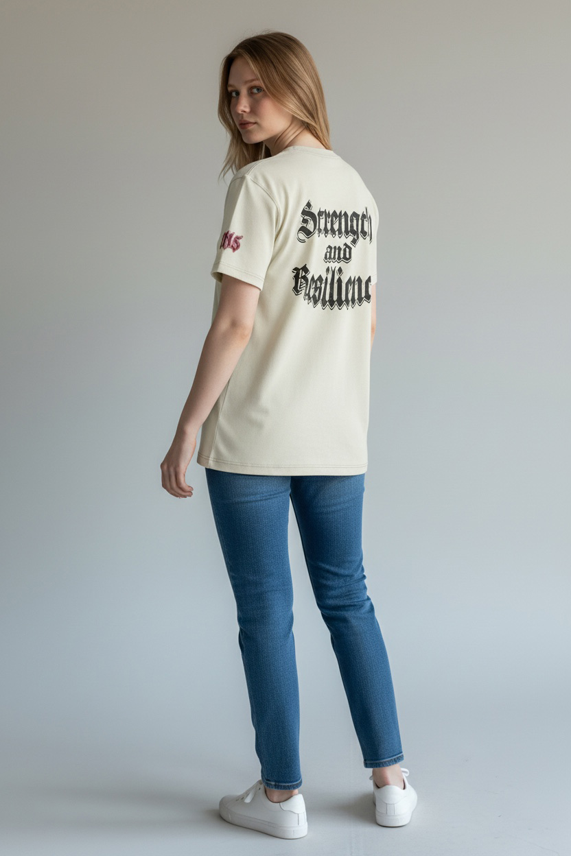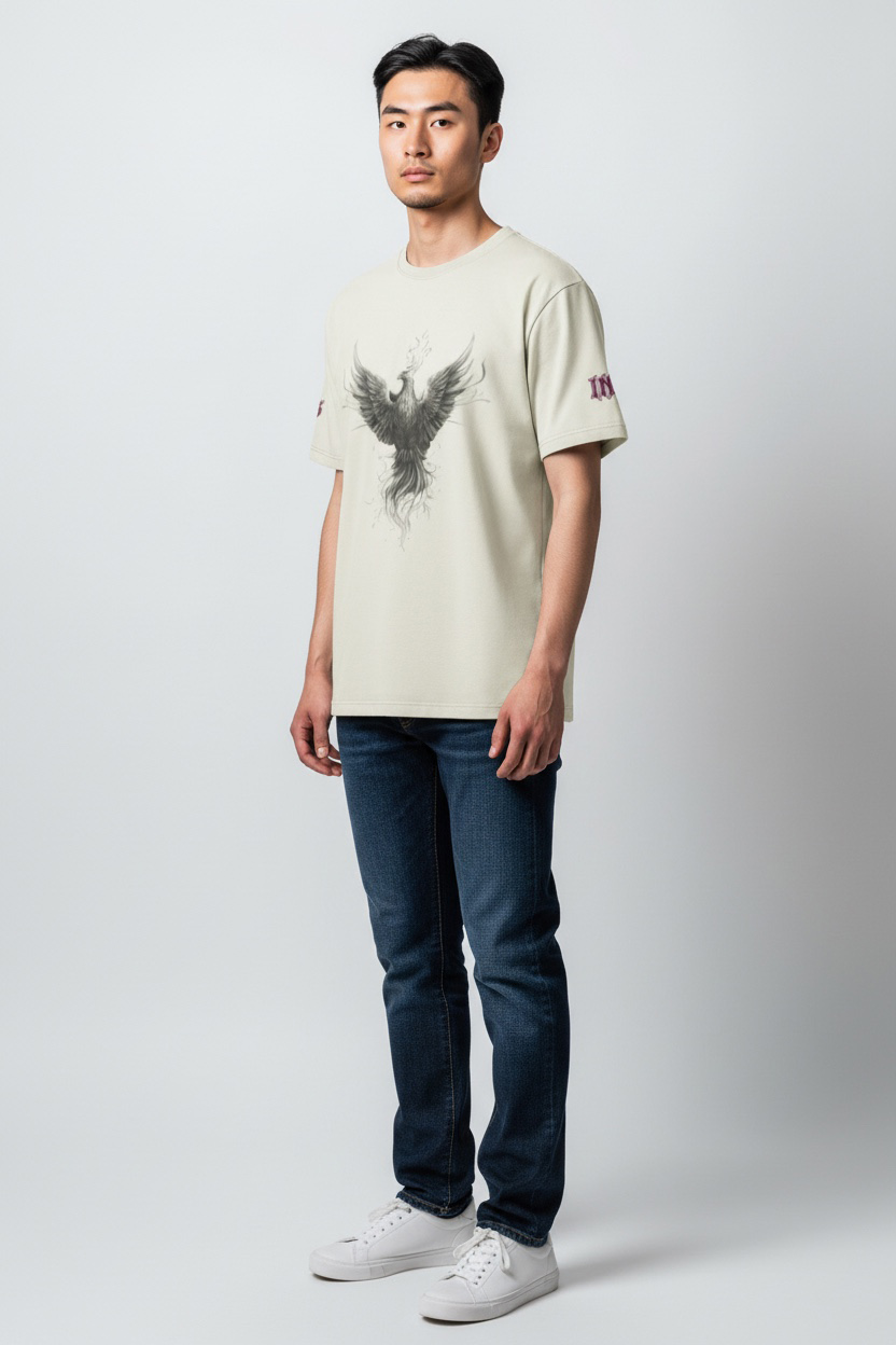 Rendered with restraint, the front graphic embodies renewal without excess, while the statement back print reinforces the philosophy with deliberate simplicity. Balanced by subtle branding, the design remains composed, intentional, and quietly powerful.